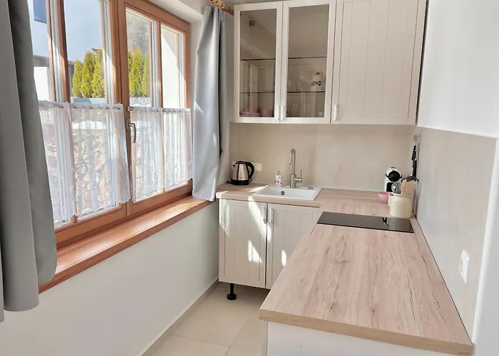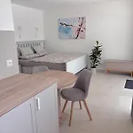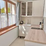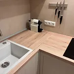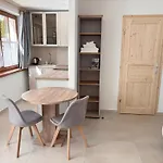 L'appartement comprend également une cuisine avec un réfrigérateur, une table de cuisson et de la vaisselle.